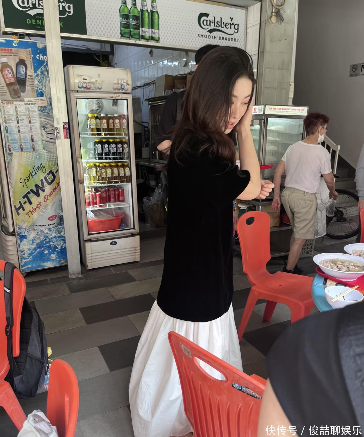 当天中午,朱珠和家人到一家大排档吃新加坡本地美食,她的穿衣打扮休闲又不失时尚,下半身穿了一条白色裙子,脚踩凉鞋,一头微卷长发随性披肩,整个人看起来好松弛,文艺范十足!她虽然已经41岁了,还生过孩子,但整个人的状态非常好,身材苗条,脸部皮肤好细腻,几乎没有皱纹。